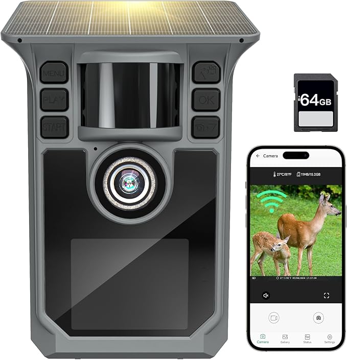 Hrivcam Trail Camera 4K 64MP WiFi Solar Game Camera